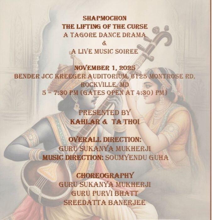 For the first time in the DMV area, this Tagore production will feature an all–second-generation Indian American cast, showcasing a beautiful blend of Odissi, Kathak, and Rabindra Nritya.